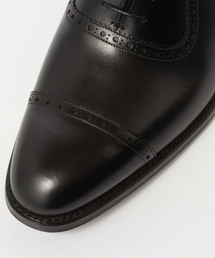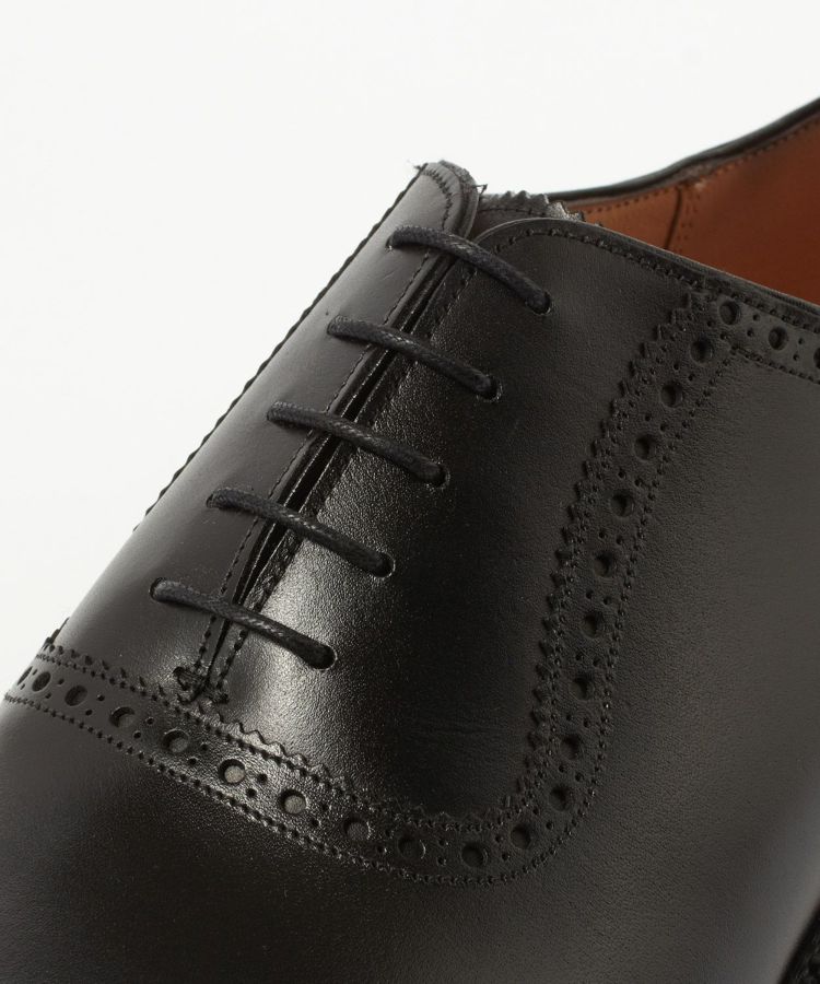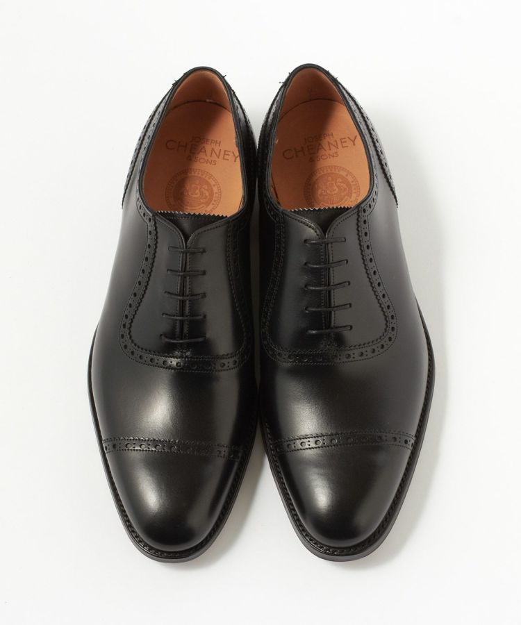 11028 LAST(木型)はチーニーが展開しているラストの中ではロングノーズです。パンチドキャップトゥがすっきりと端正な見映えになっていてドレススタイルには最適な1足。羽根部分のアデレード(竪琴型)と呼ばれる仕様は、ピンキングとパンチングを施したラインがアッパーの側面を横断していないので、サイドビューはすっきりとしたエレガントな印象。上から見ても横から見ても洒脱なクォーターブローグに仕上がっています。さりげない華やかさがあるデザインは幅広いビジネスシーンで活躍すること間違いありません。ビジネス用の2足目としても人気の高いモデルです。