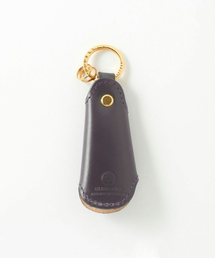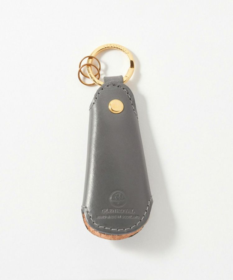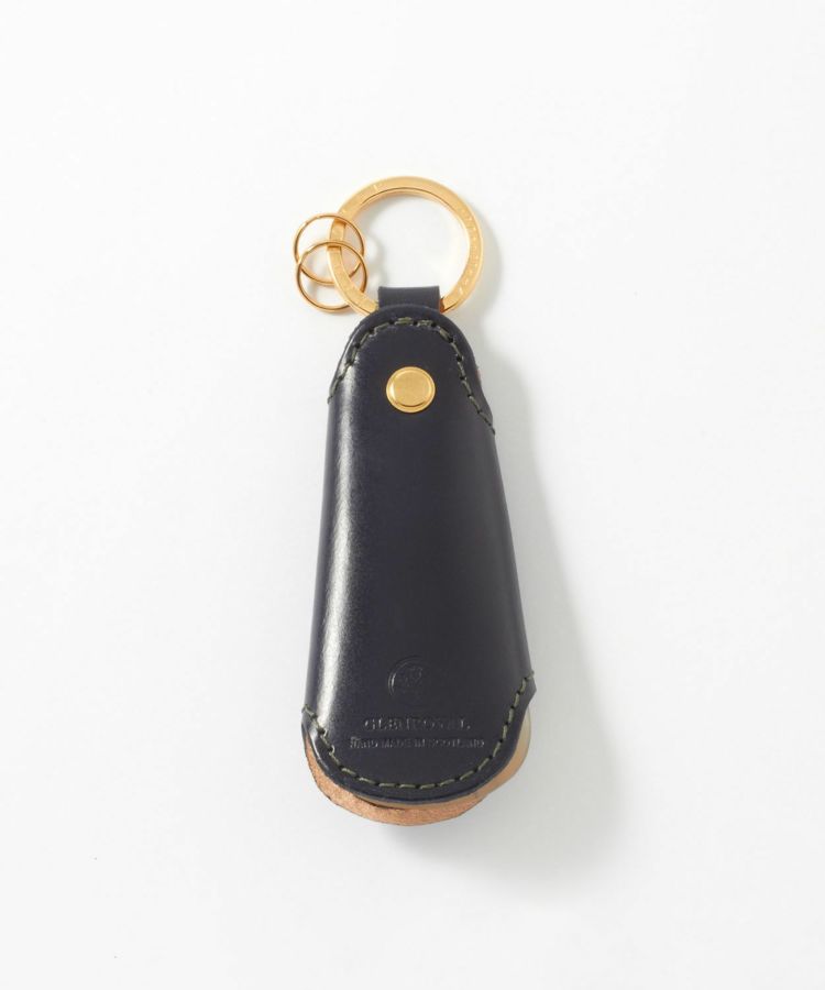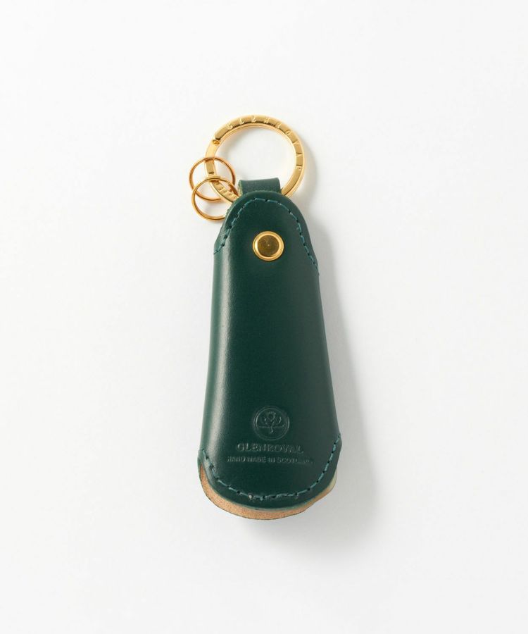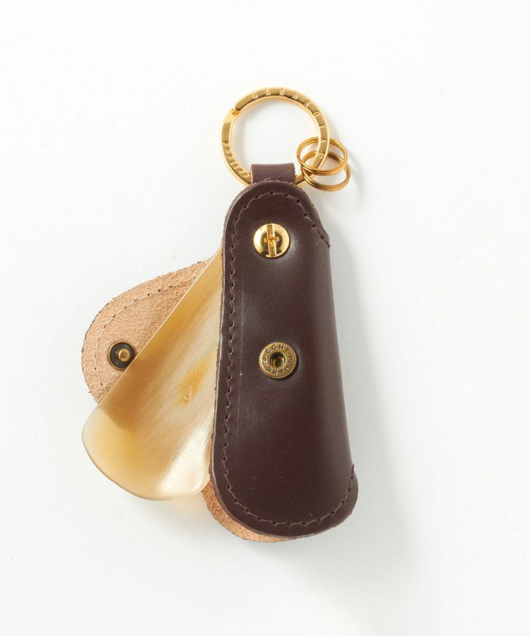 グレンロイヤルのポケットシューホーンは、何といっても手のひらに収まるコンパクトなサイズが魅力。どんな場所でも気軽に持ち歩く事が可能です。本体は水牛の角を採用しており、職人の手によってひとつひとつ丁寧に削って磨かれ、非常に滑らかな仕上がり。靴と踵の間にスルリと入り、靴を傷めることなくスムーズに履くことができます。シューホーンを覆うカバーは、グレンロイヤルのアイコンでもあるブライドルレザー。スナップボタンが付いているので、ホーンが飛び出てくる心配もありません。