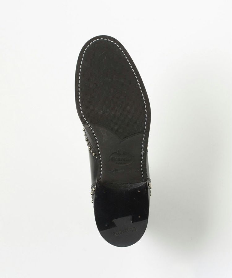スタッド付き定番サイドゴアタイプのショートブーツ、KETSBY(ケツビー)。 ウィングチップのクラシカルな表情に大小のドットスタッドが付いた他には無いチャーチならではのデザイン。メタリックな光沢により、ほどよくシャープさも加わっています。サイズ感では、サイドゴアブーツタイプの特性上、定番BURWOOD(バーウッド)よりも少し大きめに感じられる方もいらっしゃいます。ソールはラバー(ゴム)素材を使用しているため、滑りにくく機能性も兼ね備えています。 ◆この商品の特徴 ・脱ぎ履きしやすいサイドゴアブーツ ・ポリッシュドバインダーカーフ ・ソールはラバーソール(ゴム製のソール)素材 ※ブーツの全ラインアップはこちらから。 ◆雨の日にも活躍する嬉しいラバーソール仕様 細かな刻みが入った“ダイヤモンドラバーソール”と呼ばれるゴム素材のソールが多く採用されています。サイドビューのルックスは、レザーソールのようにすっきりと薄く、ドレッシーな印象に。それでいて雨の日にもグリップ性を確保してくれるという嬉しい仕様。革靴らしいキレイ目なルックスをキープしながら、急な雨の日にも活躍してくれる実用的なソールです。 ※入荷時期により裏面出し縫い糸のカラーをホワイトからブラックへ変更した商品がございます。予めご了承いただき、お買い求めいただきますようお願い申し上げます。 ※Church's専用のシューツリー(シューキーパー)をご用意しています。シューツリをあわせてご検討の方はこちらから。 ◆デイリーシューケアの方法 Church’s ポリッシュドバインダーカーフ“シューケアバイブル” 5つの要点を解説 シューツリー:1.革靴のお手入れと保管にはシューツリーがマスト 様々な靴にマッチする木型で、本体、ヒール部分共に細身にシェイプされており、余分なふくらみを靴に与えません。頑丈で吸湿性に優れたブナ材を使用しています。愛用の靴をムレや型崩れから守ってくれます。 馬毛ブラシ:2.汚れやホコリをブラッシングで除去 汚れやホコリを落とすため、汚れ落とし用ブラシでブラッシングをします。コバ周りや溝、飾り穴などの細かい部分もしっかりブラッシングしましょう。馬毛のブラシは毛先が細くしなやかなため、汚れ落としにはベターです。 ポリッシュクロス:3.あとは乾拭きだけでOK!日頃のお手入れならこれで充分 クロスでから拭きをして光沢感を甦らせます。元々樹脂加工の施されたポリッシュドバインダーカーフなので、お手入れが手軽なのが最大のポイント。簡単な日頃のケアならこの程度ですぐに輝きが甦ります。 ◆より長くご愛用いただくために BRITISH MADEオリジナル レディースシューツリー ¥7,920(税込) シューツリーは、靴を大切に長くご愛用いただくための必須アイテム。愛用の靴をムレや型崩れから守ってくれる他、靴磨きの際にも入れておくと形が維持されるので磨きやすくなります。 BRITISH NOTE 08 Church’s/ポリッシュドバインダーカーフの魅力 Church's / チャーチ Church’sは1873年、靴作りの町として有名なノーサンプトンで創業しました。正統派の英国靴として不動の地位を確立し、欧米のセレブリティや007のジェームズボンドも愛用することで知られています。チャーチのウェルト・シューズはグッドイヤー・ウェルト製法により、1足あたり250にもおよぶ工程を経て作られています。