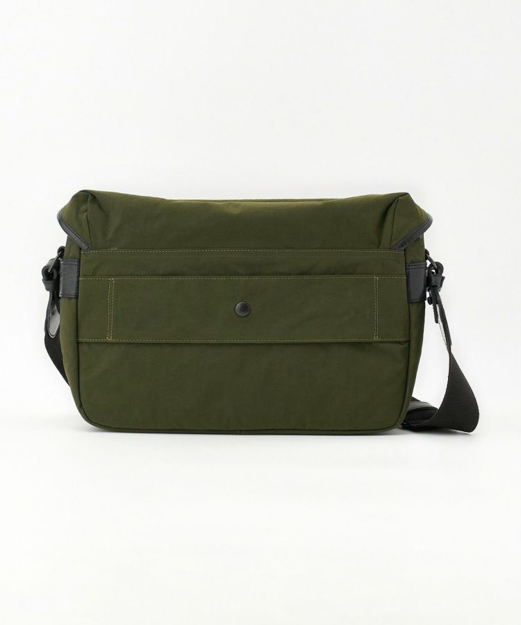 塩縮加工を施した生地密度が高いナイロンを採用したことで、強度がありながらも軽い使い心地のショルダーバッグです。タスラン加工糸を使用しコットンライクな仕上がりですが、撥水性を備えているところもポイント。フラップ裏には細々したものをわけて収納できるファスナーポケットがあり、普段使いにもぴったりです。