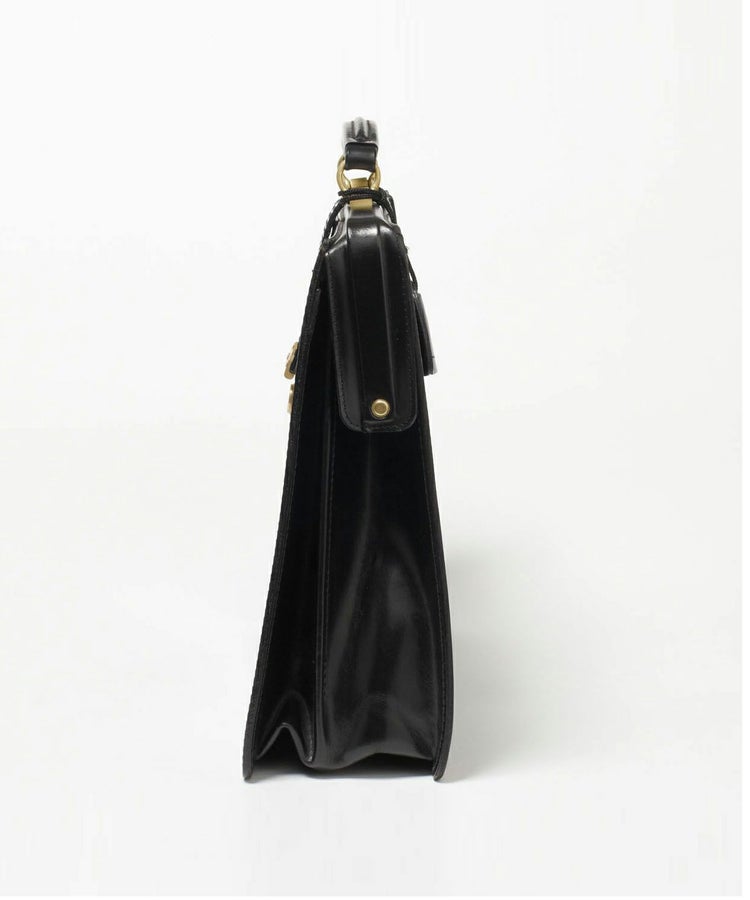 NEW BLACKのボディカラーに真鍮金具の組み合わせは、BRITISH MADEオンラインショップ限定のスペシャルモデル。開口部は180度開き、荷物が取り出しやすく、PC用クッションパッド付きで実用面にも優れた仕様。前身に付いているキーは大事な書類を守るだけでなく、デザインとしてもアクセントとなり、高級感を演出しています。