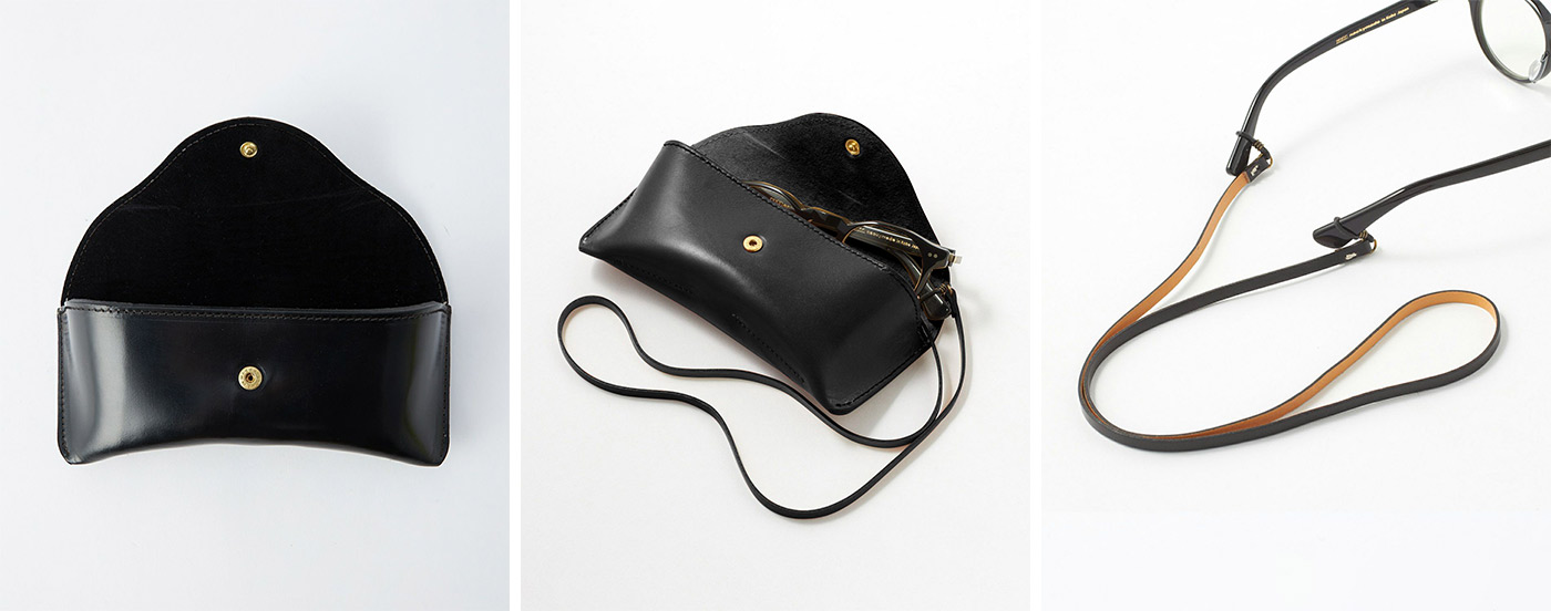 どんなデザインのメガネにもマッチする、レザーのグラスコードがついています。ケースの内側は、メガネを傷つけないようなソフトスエード調。ありそうで中々見掛けないブライドルレザーのメガネケースは、経年変化を楽しみながら長くご愛用いただけます。