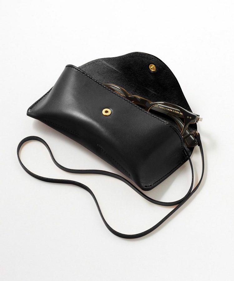 幅広いサイズのメガネに対応するブライドルレザー製のメガネケース。