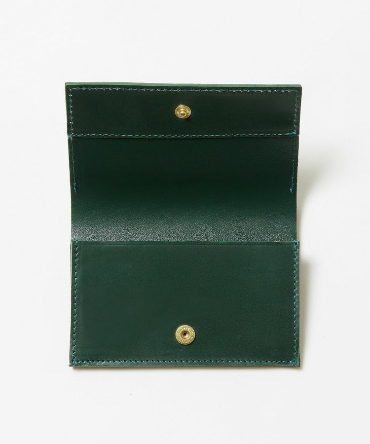 ジャケットのポケットに収まる薄型でありながら、名刺であれば約10枚程度収納が可能。スナップボタンが表から見えないので、ブライドルレザー特有の経年変化を存分に楽しめるデザイン。使い込んでいくことで、光沢感が徐々に増していきます。ビジネスマンとしての経験値とともに、風格漂う佇まいへと変化してくれる一品です。