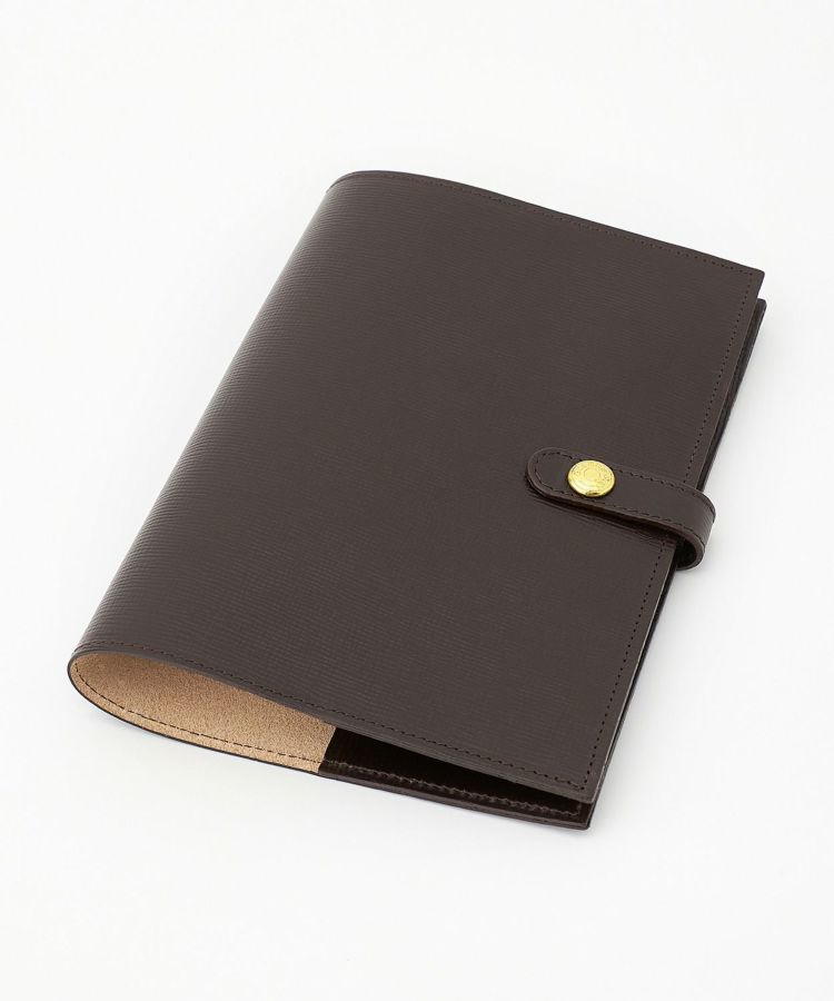 リフィルの表紙と裏表紙を差し込むタイプで、カバーから外れにくく機能性にも優れています。ペンホルダーや、バッグの中で開いてしまわないための留め具が備わっており、留め具はリフィルの厚さに合わせて2段階で調整可能。