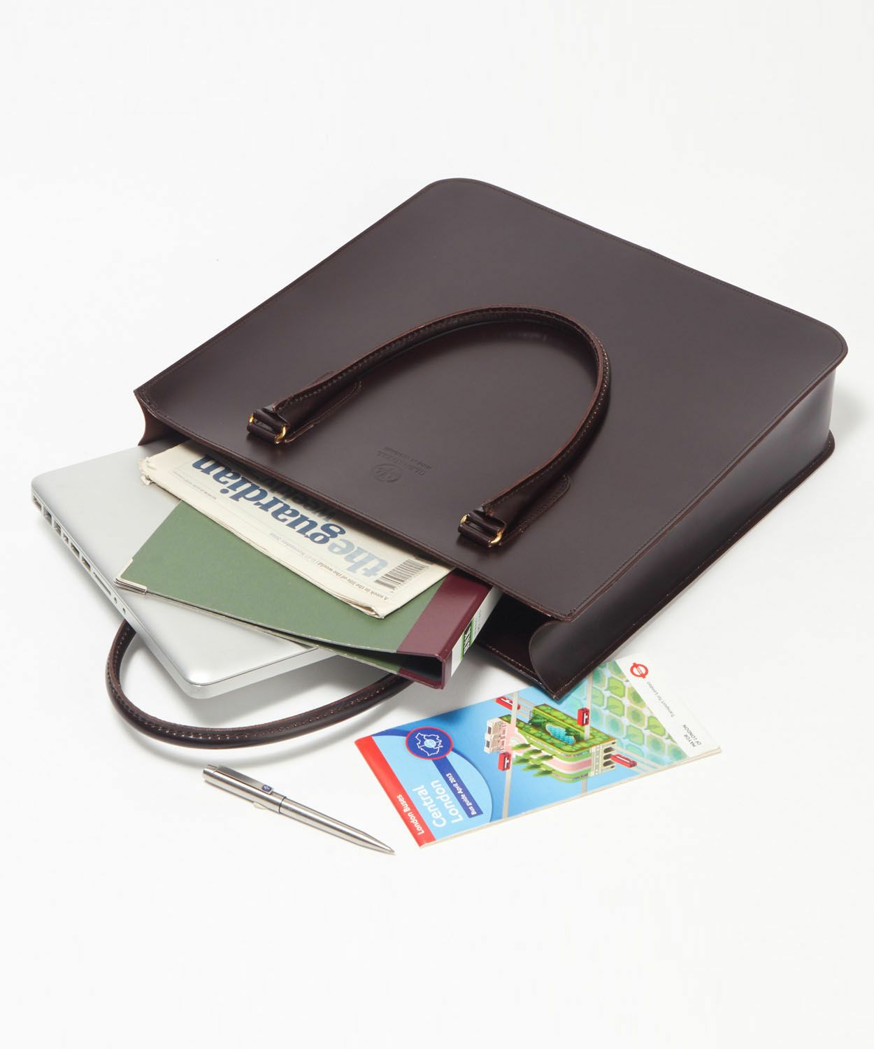 A4サイズの書類がゆとりを持って入る縦長式のレザートートバッグ。 バッグのマチは約8cm。パッと置いた際に自立するので、訪問先で足元に置いても安心です。また、開口部がジップ仕様なので、中身が見られないよう防犯性が備わっているのも嬉しいポイント。 ハンドルと本体を繋ぐのは、馬具で使用される英国製アンティークブラス。堅牢さに優れ、同じ馬具由来のブライドルレザーとの相性も抜群のデザインです。 使い込めば使い込むほど深みが増し、趣深くなっていく様子はグレンロイヤルのバッグならでは。経年変化を楽しみながら長くご愛用いただけます。 ↓このアイテムを使った関連記事はこちら↓ ・アラサー男子3人衆、夏のボーナスショッピング座談会|英国靴&バッグが狙い目 ・グレンロイヤル Q&A|ベストセラートート&サッチェルバッグのよくある質問にお答えします