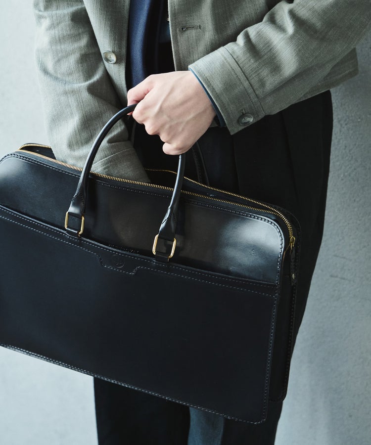 ブライドルレザーの堅牢性・耐久性を活かし、レザーの厚みを薄くすることで、レザーバッグとは思えない軽さを実現しました。シンプルな見た目ながらも、アウトサイドポケットや、本体のトップ部に配したジップの両エンドにマグネットボタンをあしらうなど、使いやすさにも配慮されています。