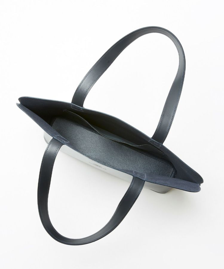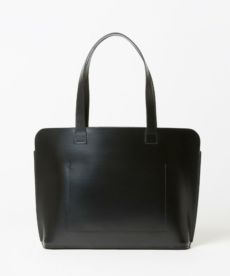 オンオフ問わずマルチに活躍する幅広のレザートートバッグ。