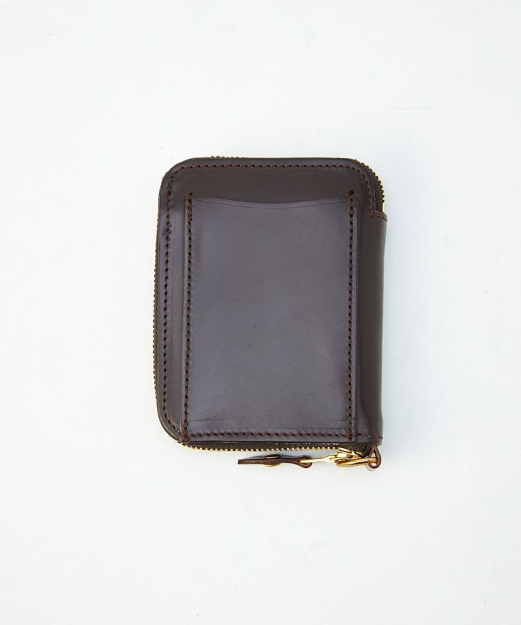 クレジットカードほどのサイズ感で、財布を開くと内側にはカード収納やマチ付きのコインケース、さらには仕切り付きの札入れがあるため、見た目以上に充実した収納力を備えています。背面外側にもカードポケットがあることで使用頻度が高いICカードなどを収納でき、財布を開かなくてもカードの出し入れが可能です。ウォレットコードやタッセル、キーホルダーなどを付けることができるDリングを搭載しているので、独自のアレンジもお勧めです。