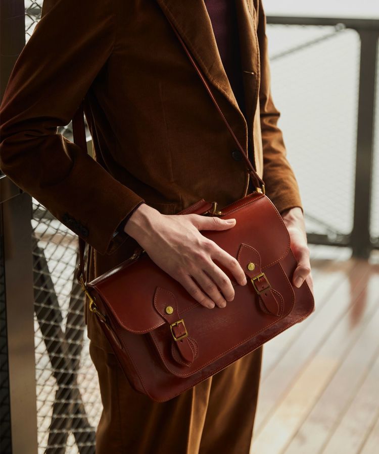 ショルダーストラップが取り外せるため、ハンドバッグとしてもお使いいただけます。イギリスでは古くから学生カバンとして親しまれていますが、利便性とトラディショナルなルックスから、近年ではファッションアイテムとしても地位を確立しています。グレンロイヤルのサッチェルバッグは、素材にブライドルレザーを使うことでより耐久性も上がり、品格も添えながら、デイリーに長く愛用できる仕様。マグネットで簡単に開閉できるフラップや、取りはずしができるショルダーストラップなど、シンプルなデザインながら大人でも積極的に使いたくなるような実用的なディテールが随所に散りばめられています。