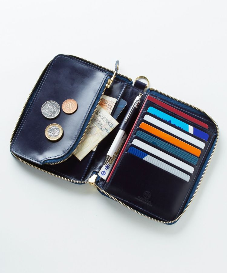 お金やカード類に加えてペンやパスポートも収納可能ながら、手のひらに収まりそうなコンパクトサイズで普段使いとしても十分活用可能。Dリングに