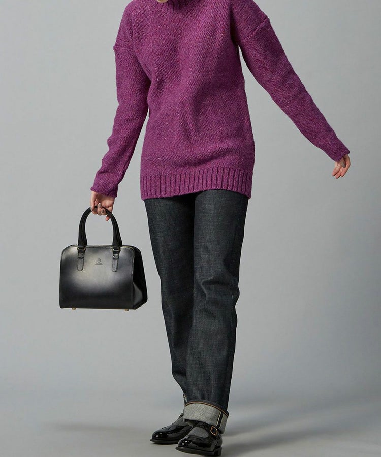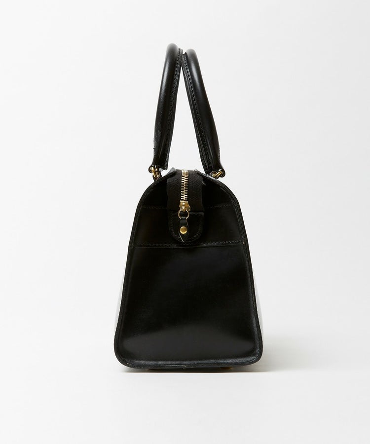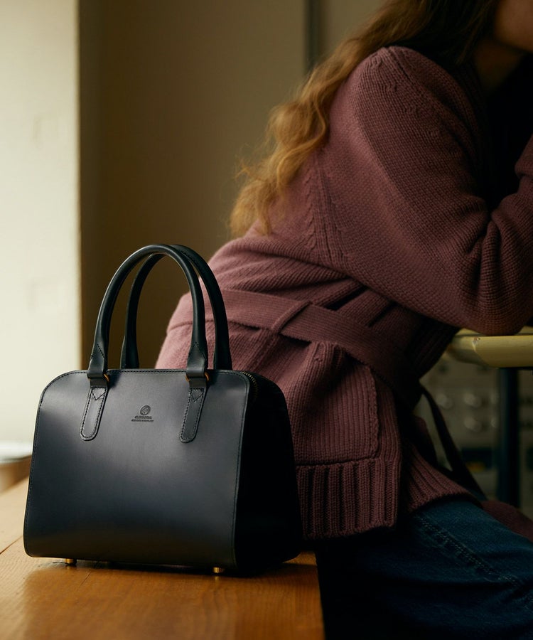 メインコレクションのブリーフバッグのハンドル部分など、グレンロイヤルらしいシンプルで研ぎ澄まされたディテールを女性らしくアップデート。上部の開閉部分はファスナーを使用し、開け閉めし易く開口部が大きく開くため出し入れもスムーズ。また小さくてもマチがしっかりとあるので、お出かけに必要なものは十分入ります。