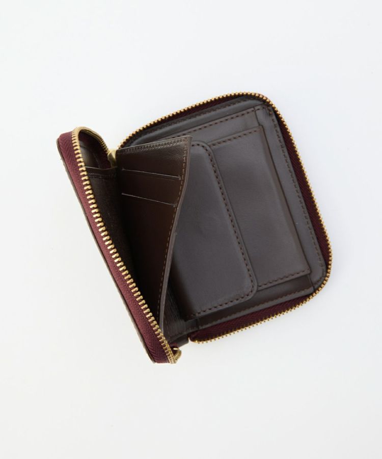 クレジットカードほどのサイズ感で、洋服やカバンへコンパクトに収めていただけます。財布を開くと内側にはカード収納やマチ付きのコインケース、さらには仕切り付きの札入れがある為、見た目以上に充実した収納力を備えています。背面外側にもカードスロットがある事で使用頻度が高いICカードなどを収納でき、財布を開かなくてもカードの出し入れが可能です。ウォレットコードやタッセル、キーホルダーなどを付けることができるDリングを搭載しているので、独自のアレンジもお勧め。