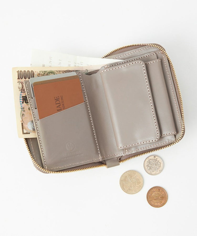 コンパクトなジップ付き二つ折りミニ財布。