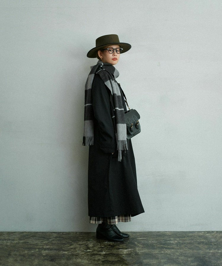 大判よりも少し小さいサイズは、ジェンダーレスなファッションが注目される中、男女問わず使いやすいサイズ感。上質なカシミヤの厚みで、一枚でもレイヤードでもアレンジが映えます。