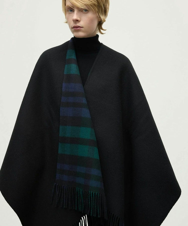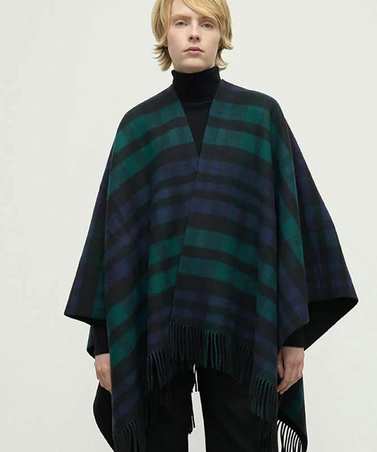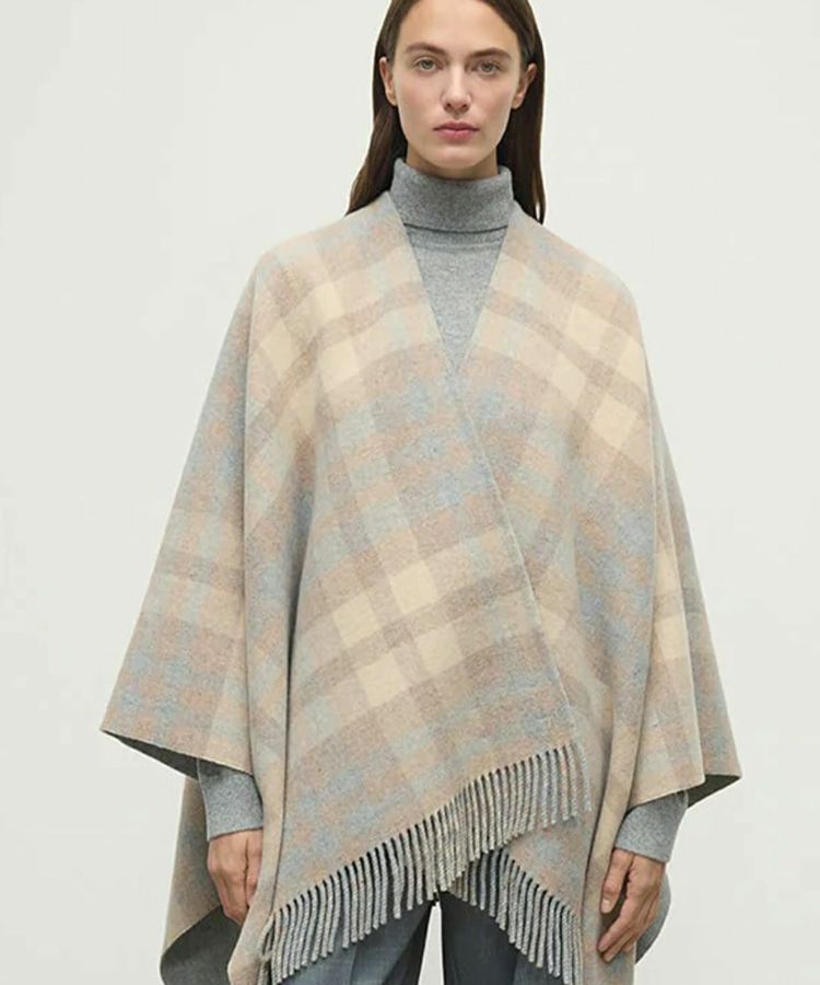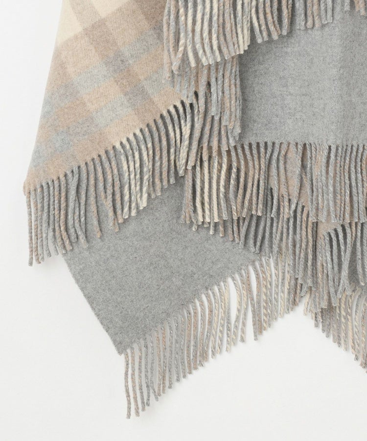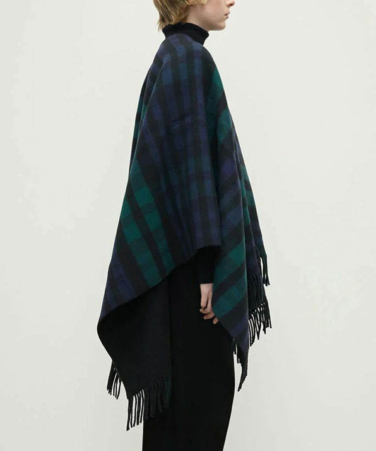 ゆったりと包み込むようなシルエットが魅力のフリンジケープ。