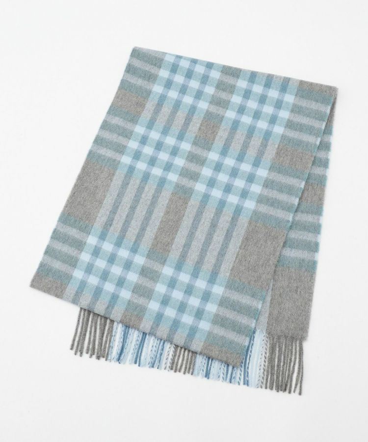 ジョンストンズ定番のマフラーとストールのちょうど中間に位置するサイズ感。コーディネートの主役としても活躍しそうなチェック柄のマフラーは、冬は首にひと巻きするだけで滑らかなドレープが生まれ、上質感が漂います。