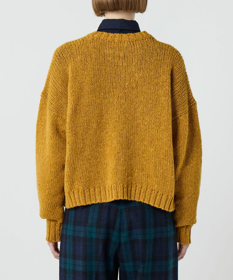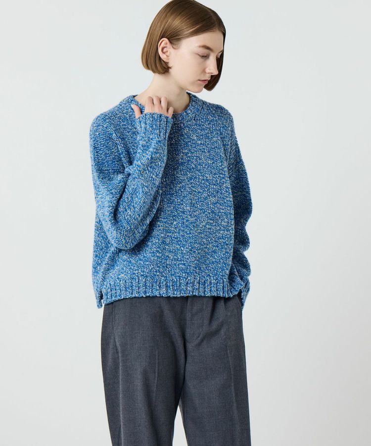 ざっくりと編み上げられたミドルゲージのクルーネックニット。