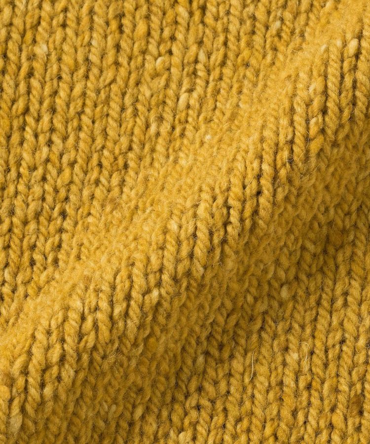 ソフトドネガルというメリノウール100%の糸を使い、細かく入ったカラフルなネップはどこかなつかしさを感じ、冬の暗くなりがちなコーディネートを鮮やかにしてくれます。軽くて柔らかく着心地が良いだけでなく吸湿性・放湿性にも優れている素材です。