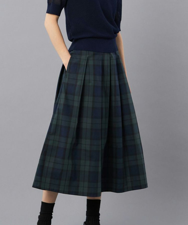 クラシックなタータンチェック地がコーディネートのアクセントになるソフトプリーツスカート。