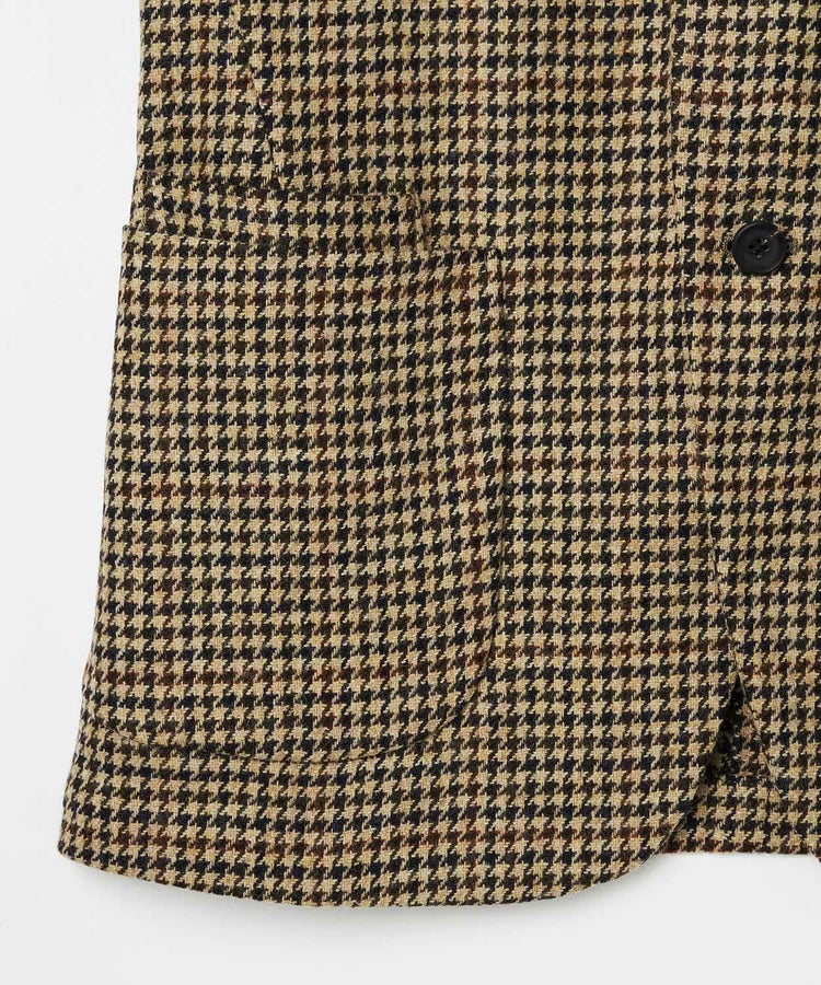 素材には、150年の歴史を誇る英国老舗マラリウス社のガンクラブチェックツイードを採用。オーストラリア・ニュージーランド産の良質な羊毛を用い、一貫工場で丁寧に糸染めされたウール100%のライトウェイトツイードです。