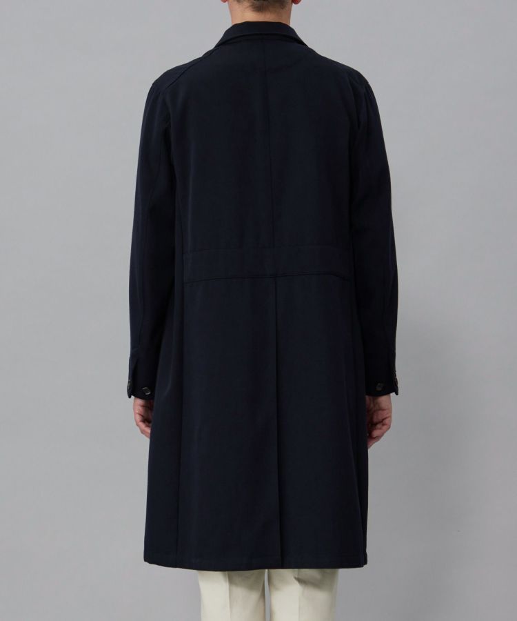 大切にしたことはドレステイストを感じられるデザイン。その為にラペル周りからVゾーンを広く立体的に、背面も肩周りをコンパクトにし、ベルトを高めにとりました。また生地にはウールとコットンを織り合わせ、ふわっとした上質な質感とワークコートらしい質感を両立。長く着込んでいく事で、生地の風合いの変化、コートが自身の体型に馴染んでいくといった過程を楽しむことができます。