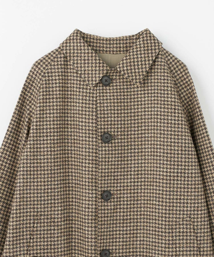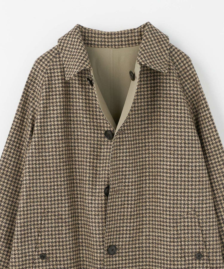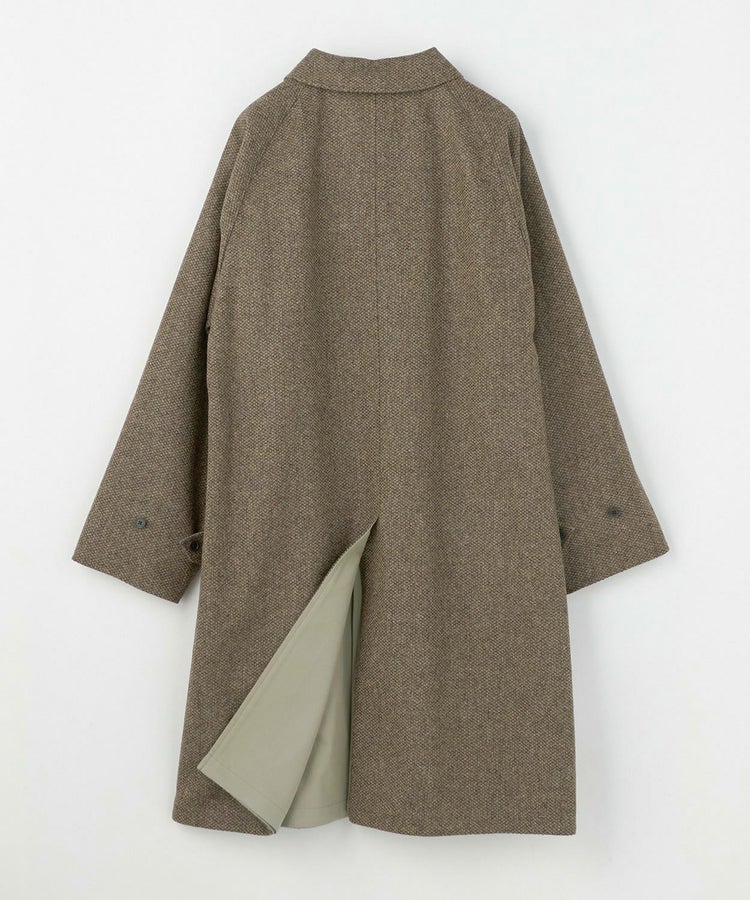 表地には英国製ツイードを使用し、クラシカルな風合いにこだわりました。裏地には、上品な王道感のあるコットンギャバジンを採用しています。表地のウールにはクラシカルな中でも異なる魅力を表現できる素材を吟味しました。日本一のコート工場で縫製が施され、その上で四方さんならではの独特のエッセンスが加わったブリティッシュメイドとしても120%の自信をもっておすすめしたい最高の1着です。