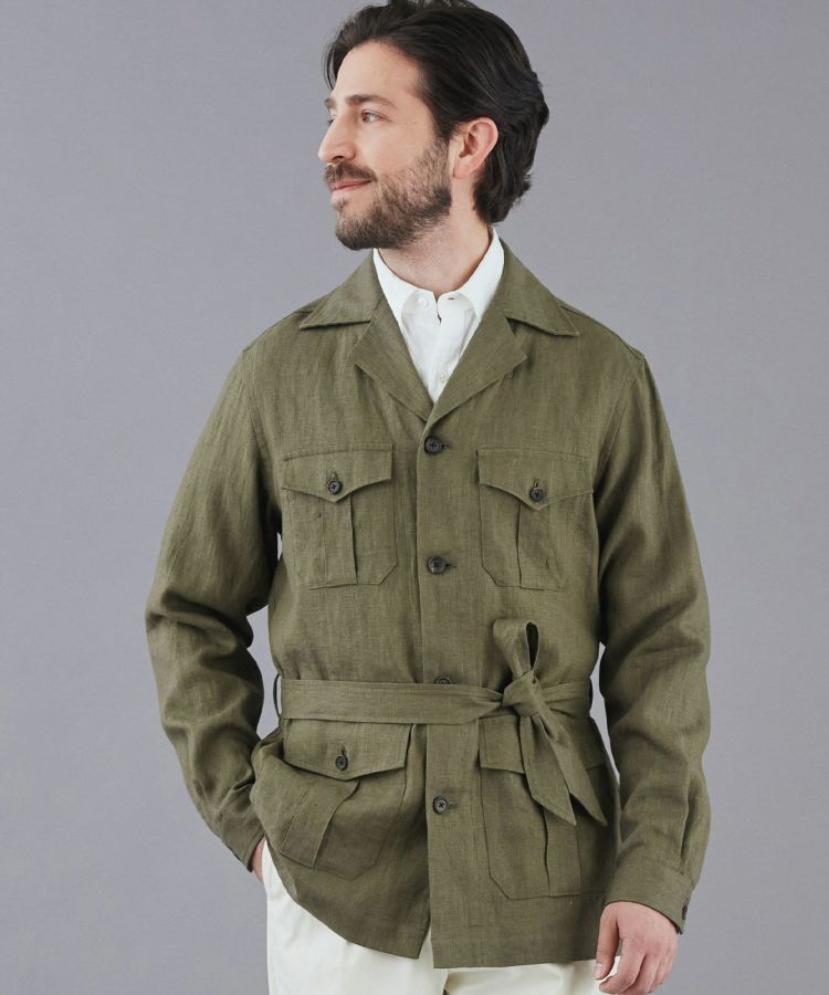パッチポケットやウエストベルトなどの装飾と、機能性で人気のサファリジャケットを再構築したモデル「サウサンプトン」。