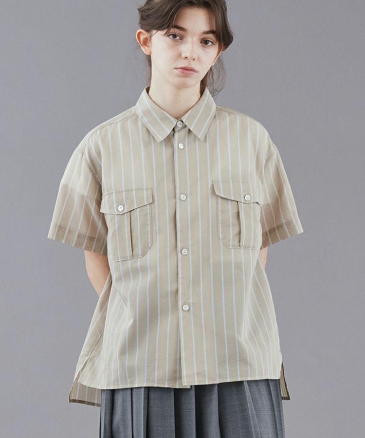 ほどよく透け感があり、薄手の生地で夏でも快適に着用いただけます。袖丈、着丈をバランスを重視した短すぎない長さにしたことで、スカートからパンツまで幅広く合わせていただけます。サイドスリットのあるデザインで、タックインがしやすいところも嬉しいポイントです。