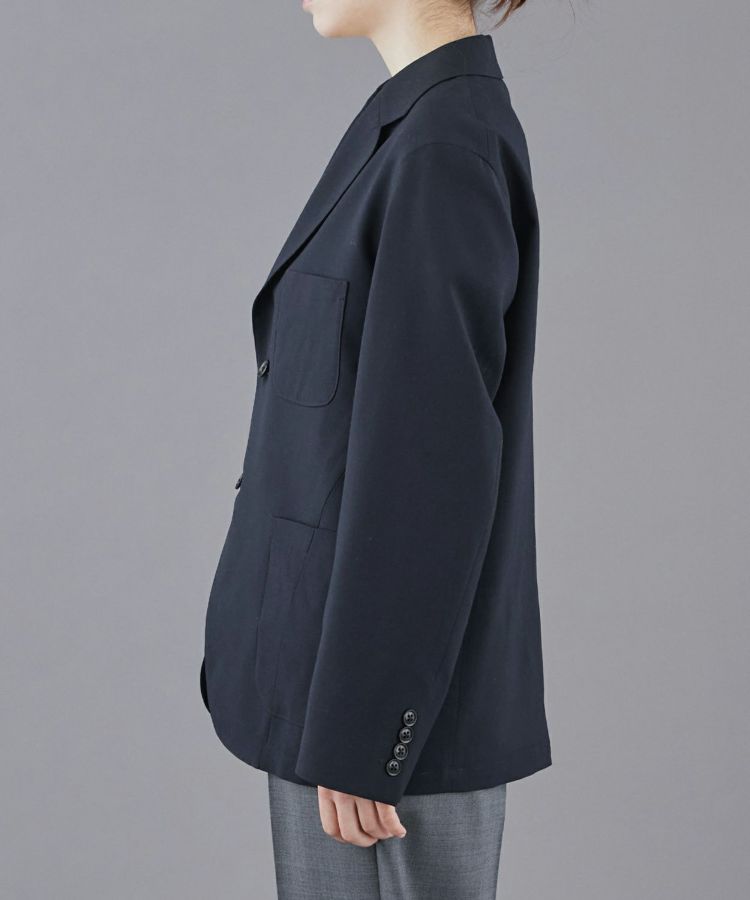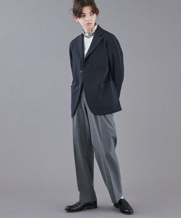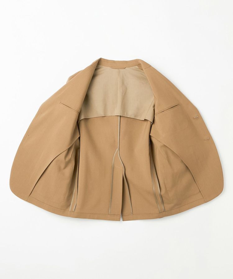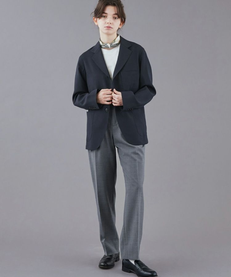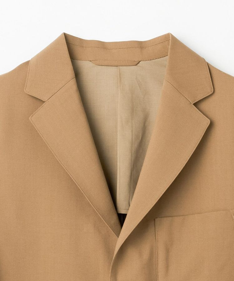 ラペルのサイズやフロントのカッティングを見直し、現代的なバランス。ミニマルなウールトロピカルを採用しているので、