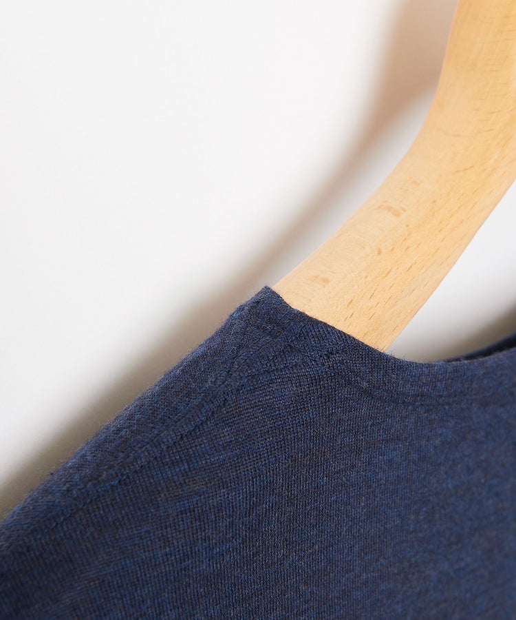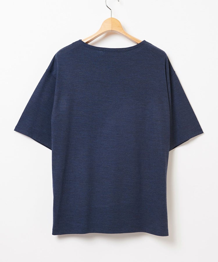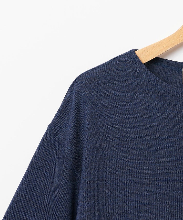 メリノウールは雑菌が付きにくく蒸れや臭いが残りにくい機能があり、湿度調節もしてくれます。朝晩の気温変化や、夏場の冷房での体温調節の場面もしっかり対応してくれる天然の高機能素材です。本アイテムではメリノウール表面にスケールオフ加工(人間の髪でいうウロコのようなものをはがす加工)を施したことで、ソフトでナチュラルな風合いを出しています。ウォッシャブル仕様なので自宅で洗濯も可能です。