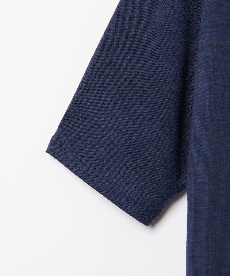 保温性、防汚性、防臭・抗菌性の高い上質なメリノウールを厳選して使用。フライスやリブをソリッドデザインにしたことで、ベースレイヤーで着用したときもアウターに響かずにきれいに着用することが可能です。ネックはリブ無しなのでカジュアルに見えすぎることもなく襟元もスッキリ。1枚で着てもソリッドなシンプルさを感じさせてくれるアイテムです。