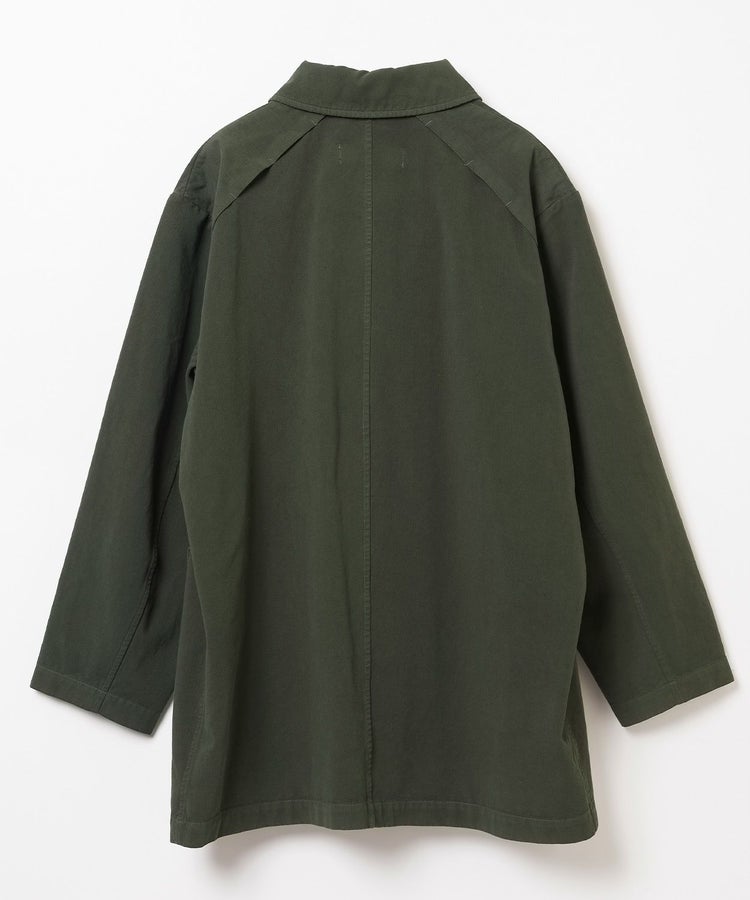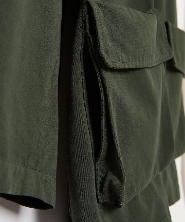 1960年代イギリスのマウンテンコートを現代的なアプローチでモディファイ。生地は60番双糸に追撚をかけて高密度で織り上げたドライタッチな生地を採用。さらに製品染めをかけることで、表面に独特なしっとりした微起毛感があり、ヴィンテージのような味わいある生地感に仕上がっています。