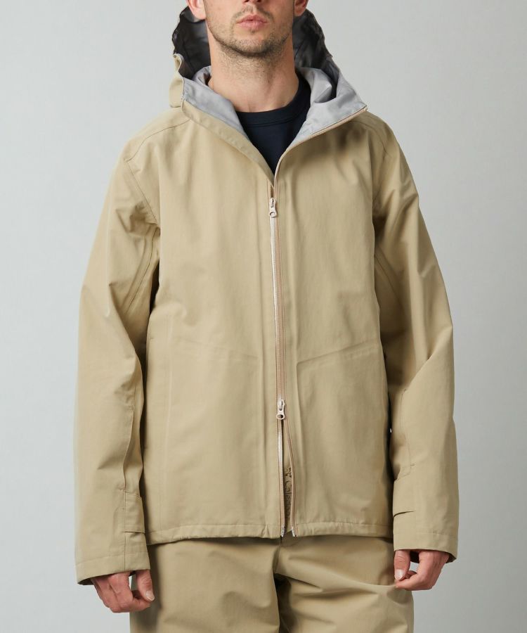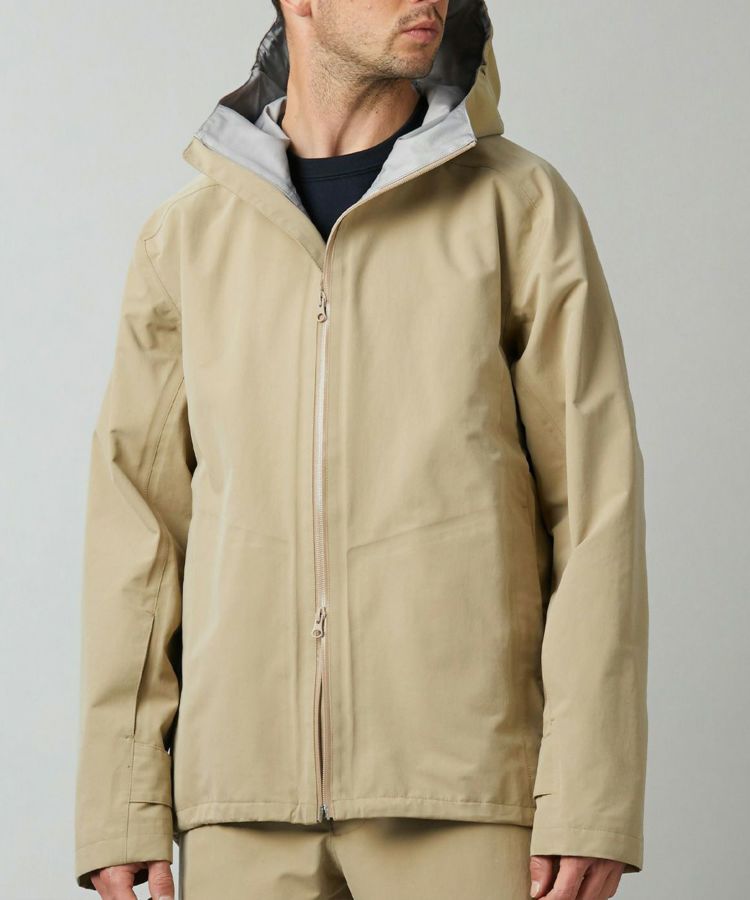 強い雨や吹雪でも水の侵入を防げる耐水圧20,000mmレベル / 透湿度8,000g/m2/24hrレベルの透湿防水ナイロン素材を採用。表面と裏面にはポリコット系、その間にフィルムが入っている3レイヤー構造のため、裏地がなくても蒸れることなく快適に過ごせます。ハリコシのあるテクニカルな機能系素材ながらも、起毛感のあるコットンライクなナチュラルな風合いで、タウンユースでも活躍するアイテムです。
