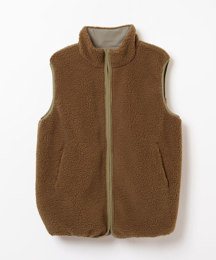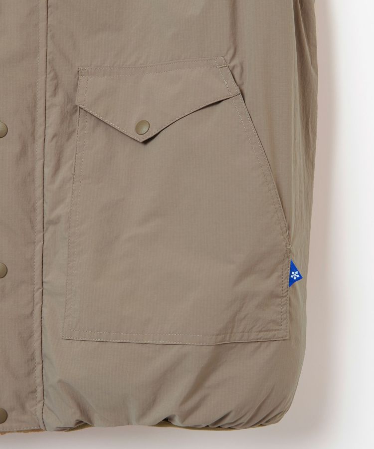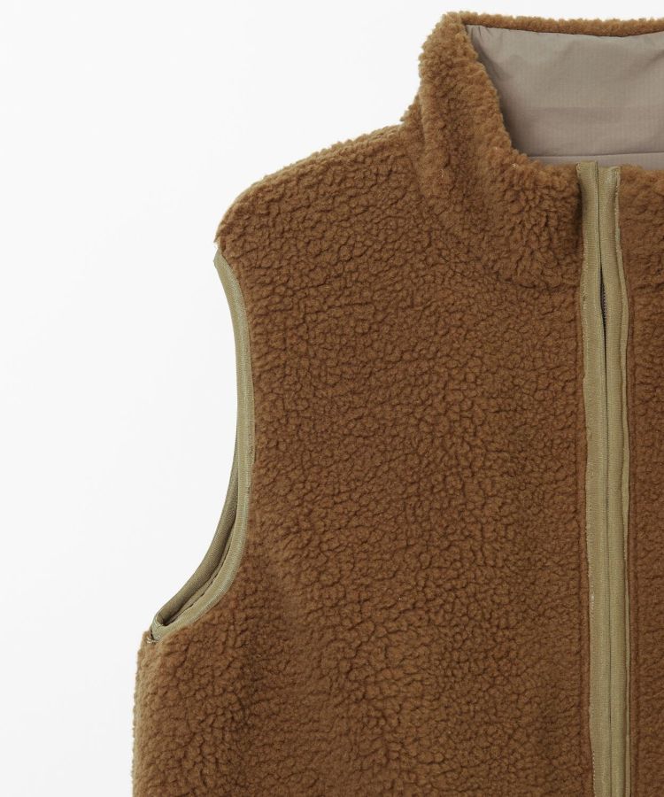 1990年代のアウトドアシーンでよく使われていた、リバーシブルの表がナイロンで裏がボアのベストを、現代的な素材とシルエットにモディファイしたアイテム。どちらの面も様々なレイヤードスタイルを楽しめます。