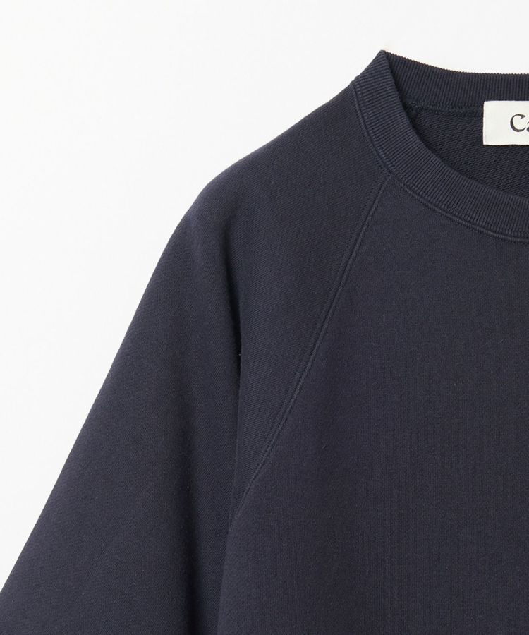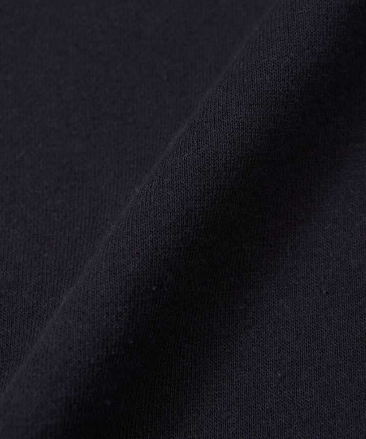 コットン100%の裏毛素材のため、ふんわりとした柔らかさが体を包み込んでくれる着心地です。糸を織りあげていく際に、原綿にできるだけストレスを与えず、糸本来が持っているソフトでふっくらした触感を表現するため、和歌山にある丸胴編み機で時間をかけてゆっくりと編み上げているアイテムです。