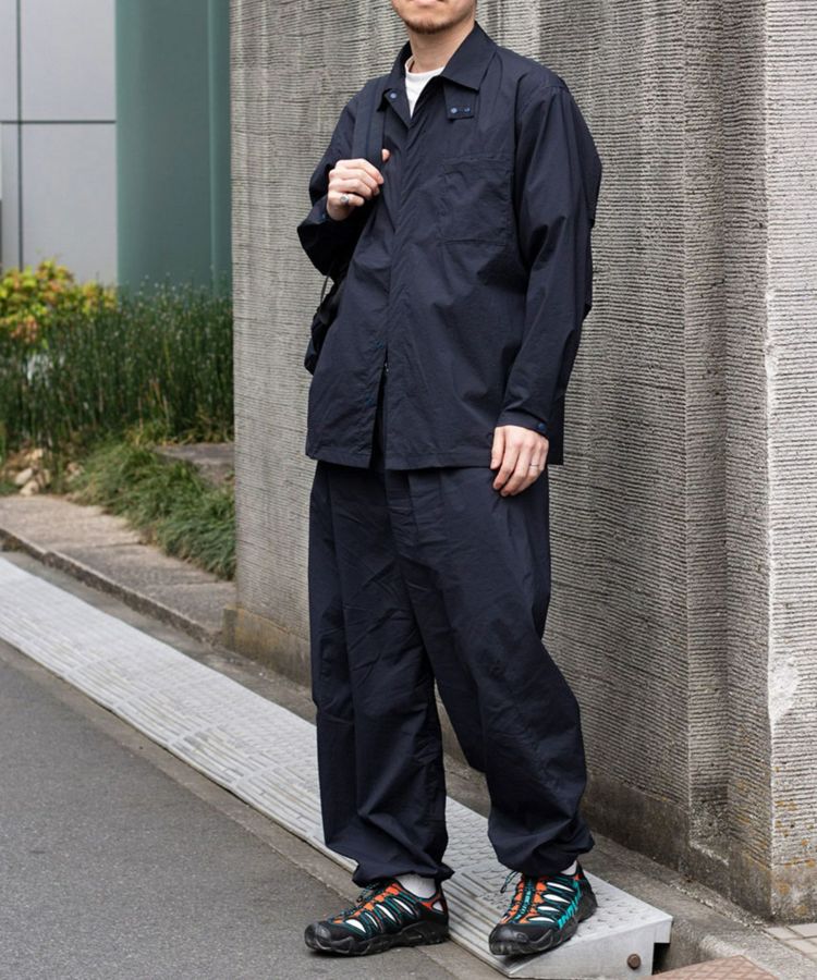 ・同素材のライトウェイトパッカブルトラウザーズやセットアップで着用可能