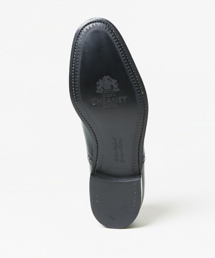 ジョセフ チーニーの靴は、創業当初より伝統的なグッドイヤーウェルト製法を採用しています。靴のアッパーとソールの間に長いベルト状のウェルト(細革)を縫い込ませるこの製法は、耐久性を高め、長く履き続ける上で欠かせないソールの交換を可能としています。