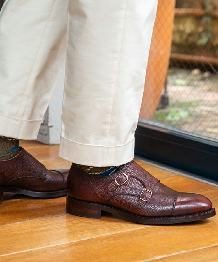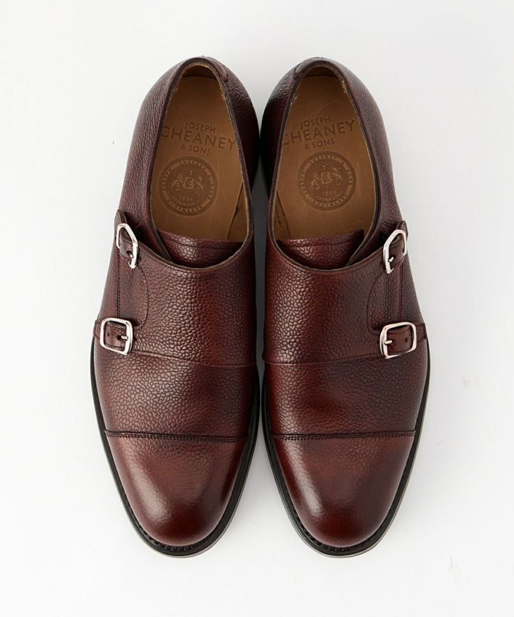 傷・汚れ(水濡れ)にも強い大粒のシボが特徴のグレインカーフを採用し、スーツからカジュルなスタイルにまで様々なスタイルに合わせることができるダブルモンクシューズ。 ラストには125を採用。少し角が残る丸みのあるトゥが印象的でクラシックな正統派のイギリス靴という佇まいで、やや細めのウィズ(幅)で踵が小さい現代人に合うようにヒールカップは小さめにバランスよくデザインされています。 レザーのカッティングからファイナルポリッシュまでの全工程をノーザンプトンの自社工場で完結。熟練の職人によって8週間で160以上の工程を経て作られています。 ◆この商品の特徴 ・グッドイヤーウェルト製法 ・F FITTING ・125LAST ・大粒のシボが特徴的な耐久性の高いグレインカーフレザー ・滑りにくく実用的なダイナイトソール ◆125LAST(木型)について チーニーの125 LAST は2011年に125周年を迎えたチーニーが新たに開発したラストです。日本人を含めた現代人の足を考え抜いて作られたこのラストは、以前よりも細見のフィットを採用し、ヒール部分を小ぶりにすることで現代人の足によりフィットする構造になっています。またスマートな表情を取り入れつつも、バランスのとれた丸みのあるトゥで伝統的なクラシック感を残した新しい定番モデルです。 [関連記事]BRITISH NOTE 20/計算しつくされたシェイプとフィッティングの「125ラスト」を知る ◆より長くご愛用いただくために CHEANEY 125LASTシューツリー ¥29,700(税込) 高級素材のメープルを使用した、125ラスト専用のダブルチューブ式シューツリー。 シューツリーは、靴を大切に長くご愛用いただくための必須アイテム。愛用の靴をムレや型崩れから守ってくれる他、靴磨きの際にも入れておくと形が維持されるので磨きやすくなります。 ◆ケアアイテム BRITISH MADE オリジナルシューケアキット ¥17,600(税込) クリーム:スムースレザーのシューズ・ブーツ等の皮革製品用シューケアクリーム。 クリーナー:天然成分配合 水性タイプの皮革製品用クリーナー。 ブラシ(豚毛):クリーム浸透用。コシ強く磨き等に最適な豚毛を採用しています。 ブラシ(馬毛):ホコリ落とし用。コバなどの隙間に入ったホコリもしっかり落とせます。 クロス:4枚セット。指に巻きつけやすい長方形サイズです。 ◆プロの靴磨き職人による靴磨きの全工程を伝授 “How to 靴磨き”をテーマに、プロの靴磨き職人による靴磨きの全工程一発撮りを有料配信。シューレースを解く工程から、鏡面磨きまでノーカットでご覧いただけます。*詳細はこちらから。 英国靴の老舗ジョセフ チーニーから2024年秋冬新作が到着です ジョセフ チーニー / JOSEPH CHEANEY 1886年、英国靴の聖地にて創業。日本で伊藤博文が初代総理大臣の任に就いたその翌年。1886年に英国にてチーニーは誕生する。 創業地であるノーザンプトンはその昔から豊富に革材が得られる土地ということもあり、1600年代から革靴が作られていたという。職人であったジョセフ・チーニーは、そんなノーザンプトンのデズバラーにブランドのオリジンとなる「J.Cheaney,Boot & Shoemakers」を設立。 そして1896年には工場を同じデズバラーの現在の場所に移すこととなる。以来、革材をカットする工程からグッドイヤー式の底付けなどを含む縫製、最終的なポリッシングに至るまで、一貫してひとつの工場にて行うスタイルを堅持している。 チーニーは創業以来変わらず熟練職人による自社一貫生産を行い、「Purely Made in England」を続けており、本当の意味での英国靴ブランドなのである。