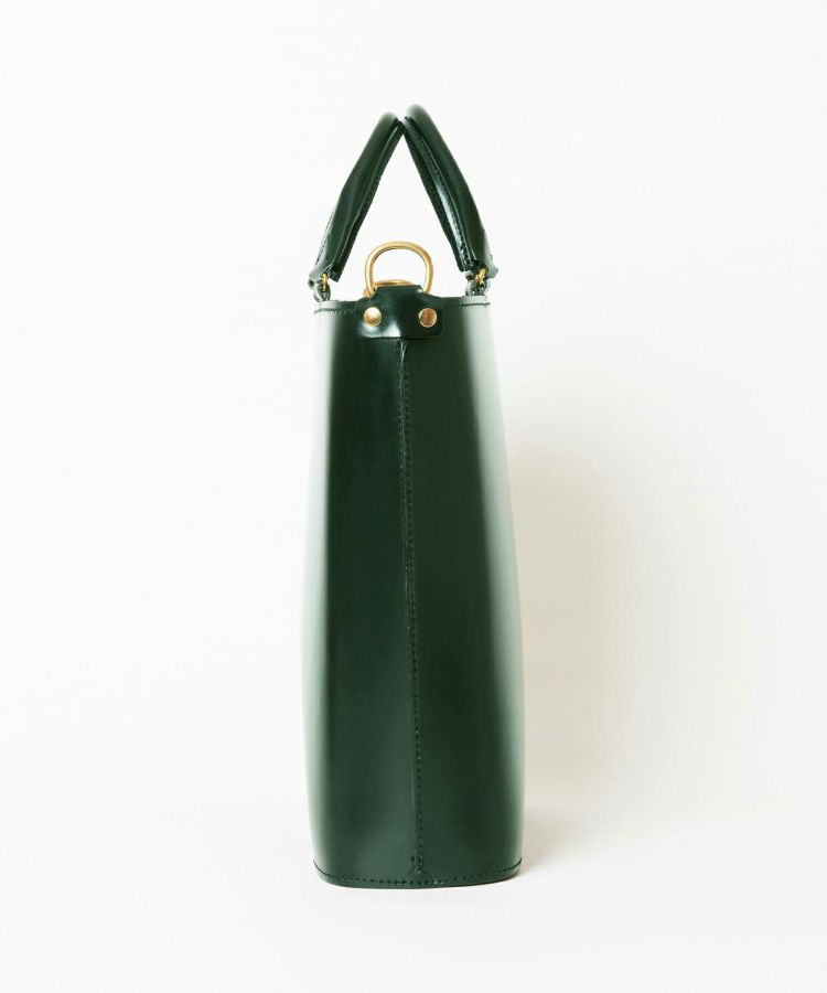 グレンロイヤルのアイコンでもあるブライドルレザーをたっぷりと使い、高級感のある見た目ながら軽量でオンオフ問わず日常的に使いやすいデザイン。パッド付きの取り外しが容易なショルダーストラップが備わっており、自転車での移動など両手をフリーにしたい際には肩掛けも可能です。金具類には味のあるABBEY ENGLAND(アビー イングランド)のアンティークブラスを使用。パッと置いた際に自立できるマチの確保や、トップに中身が飛び出さないようにジップ付きの弁を配置するなど、見た目はシンプルながら細部にまでこだわりが詰まったアイテムに仕上がっています。