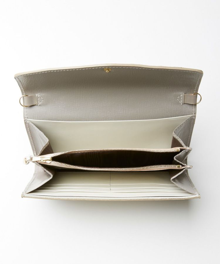 女性にうれしい実用性と機能性を取り入れたショルダー付きフラップ長財布。