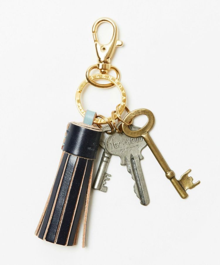 キーホルダーとブライドルレザーの上品なコンビネーションは男女ともにお使いいただけるアイテム。程よい厚みでキーホルダーとしてもお使いいただけるほか、バッグやお財布につけてアクセントとしてもお使いいただけます。ギフトにも喜ばれるおすすめのアイテムです。