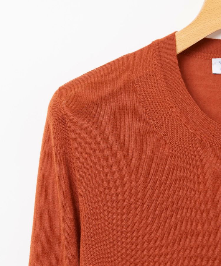 メリノウール素材の特徴を存分に生かしたシンプルなラウンドネックセーター。