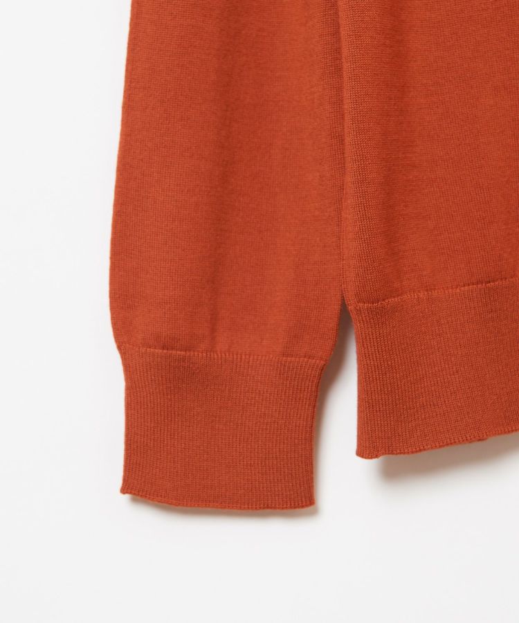素材には、標準的なメリノウールよりも細くなめらかで耐久性に優れたスーパーファイン・ウステッド・メリノウールを使用。ニット特有のチクチク感がなく非常に柔らかな肌触りです。また、製法には無駄な繋ぎ目のないシームレス製法を用い、着用した際のごわつき・もたつきを軽減した、非常に滑らかでストレスフリーな着心地に。素肌の上でも気持ち良く快適に着用いただけます。