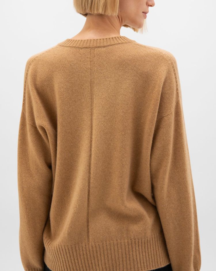 薄手のカシミア繊維は驚くほど軽く、柔らかな肌触りを実現。袖口と裾のリブが全体の印象を引き締めています。シンプルなデザインでありながらも素材が持つ上質さが、普段のスタイリングをグレードアップしてくれる一着です。