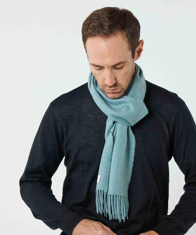 プレーンなデザインでオンオフ問わず使え、コーディネートに取り入れ易いマフラー。