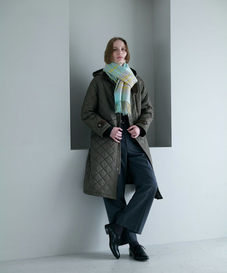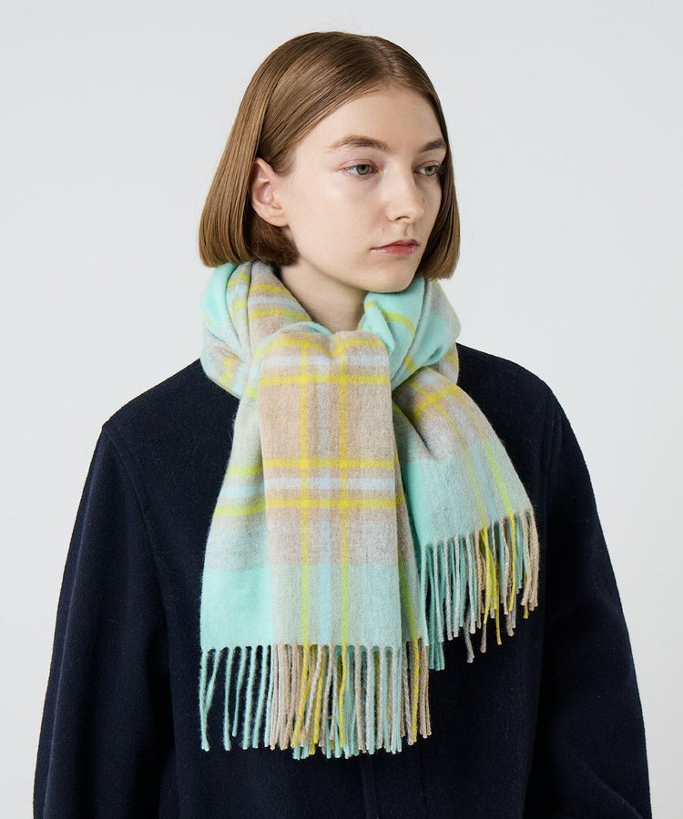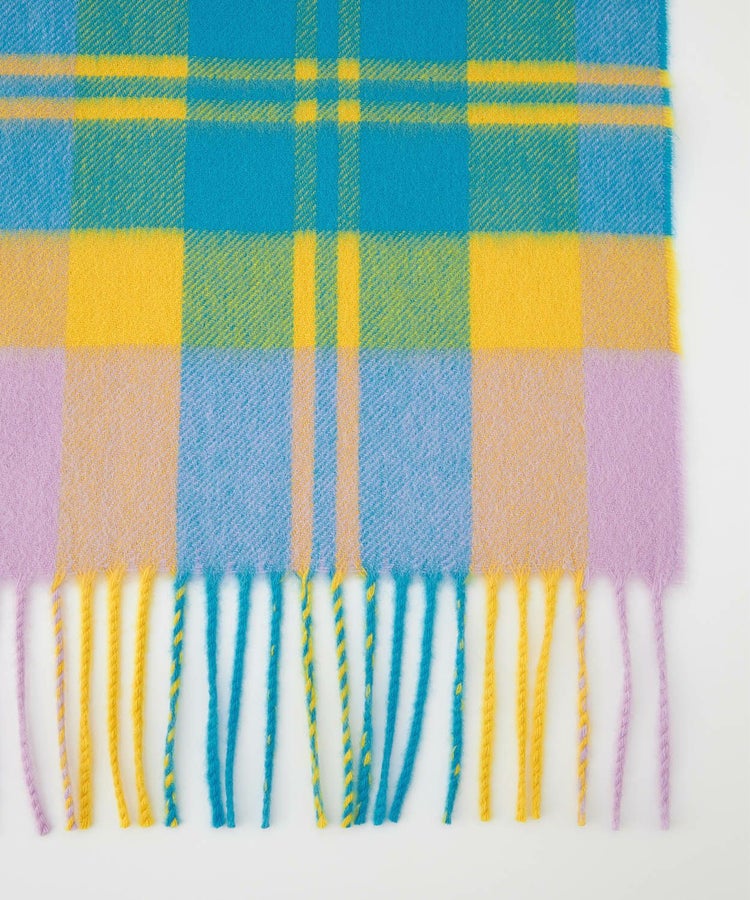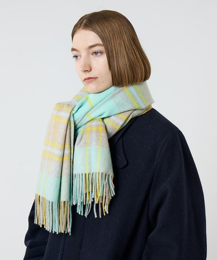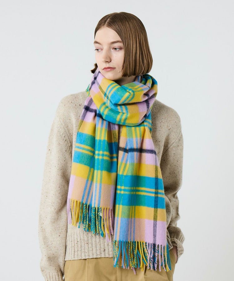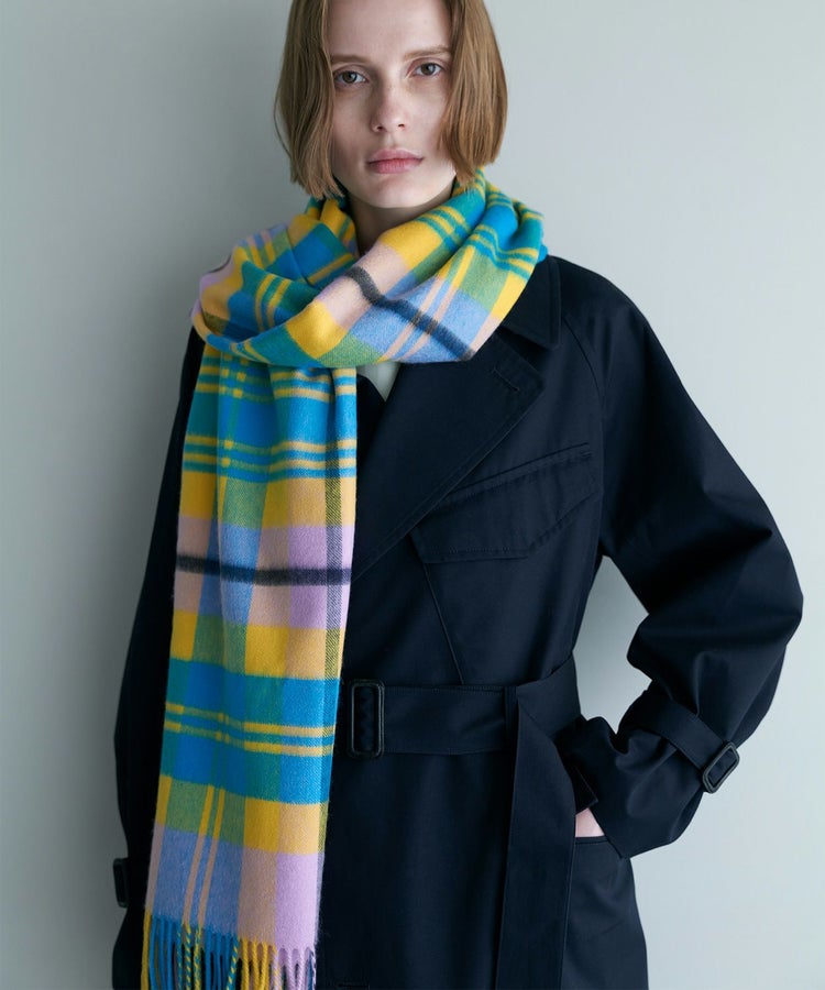 柄はクラシックなタータンチェックをベースに、印象的な配色をピックアップ。派手すぎず、それでいて確かな存在感を放つバランスにこだわりました。重くなりがちな秋冬のコーディネートを、ひと巻きで華やかに、そして品よく仕上げてくれます。