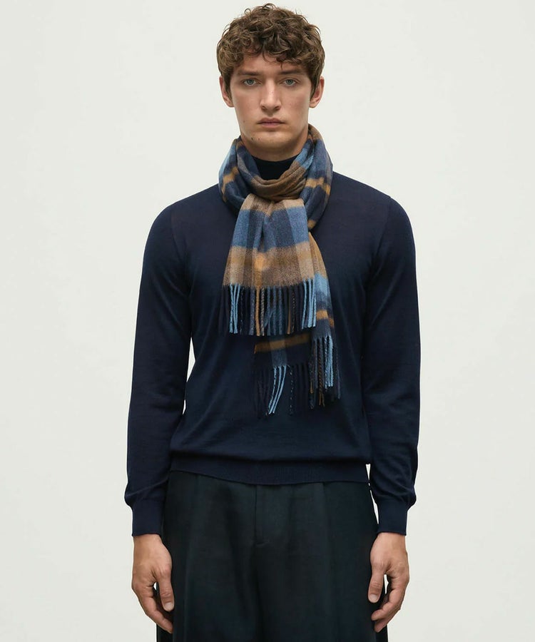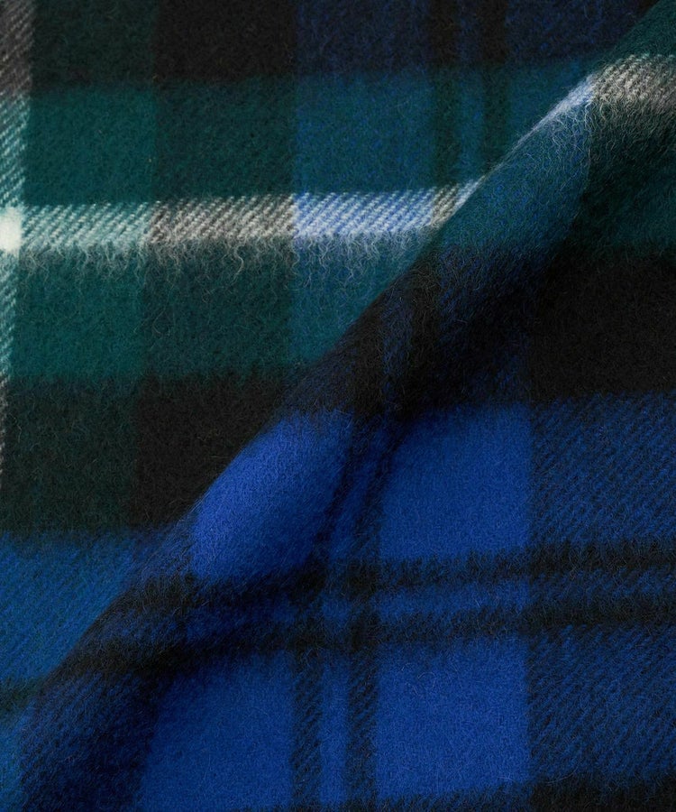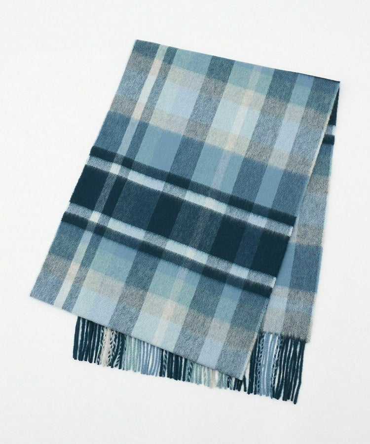 ジョンストンズ定番のマフラーとストールのちょうど中間に位置するサイズ感。コーディネートの主役としても活躍しそうなチェック柄のマフラーは、冬は首にひと巻きするだけで滑らかなドレープが生まれ、上質感が漂います。