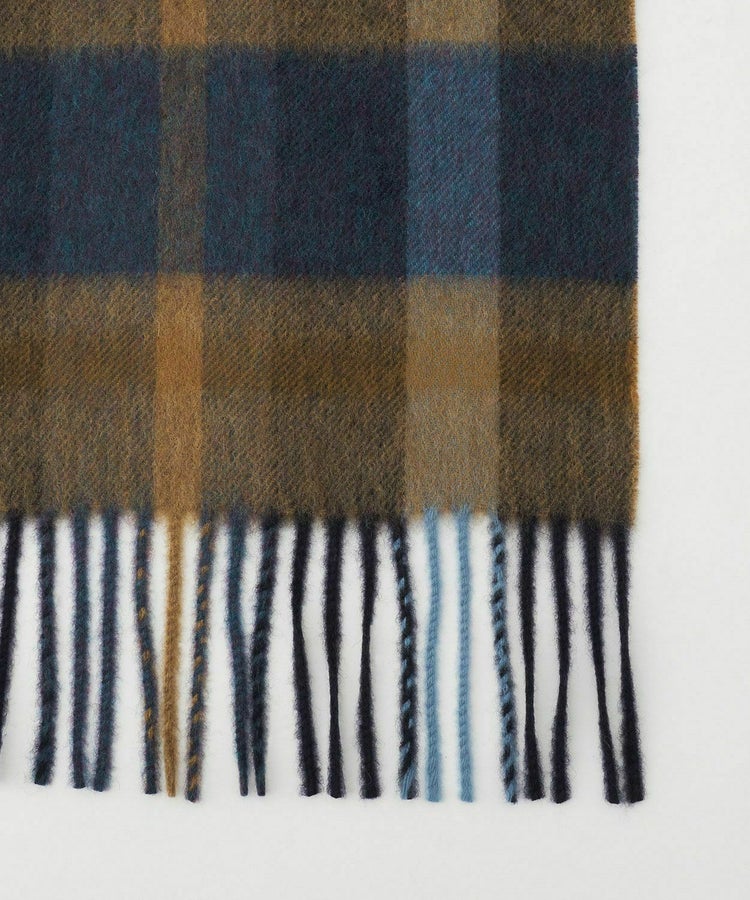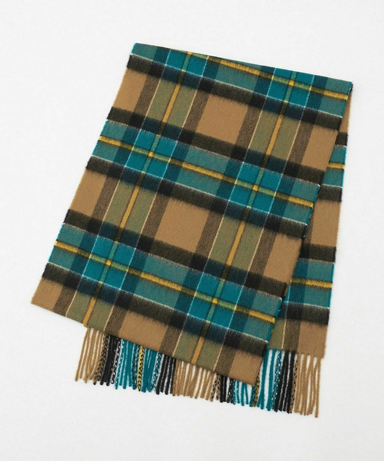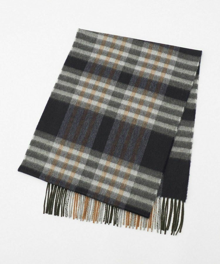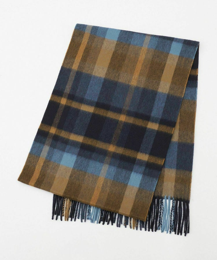 オールラウンダーな中判サイズ。長さがあるので、巻き方を工夫して遊ぶこともでき、適度な太さが首元にボリュームを出してくれます。タータンチェック柄をアクセントに入れたいときはもちろん、アウターやパンツと同系色のワントーンカラーコーディネートでも滑らかなカシミヤの質感と光沢がスタイリングに立体感を生んでくれます。