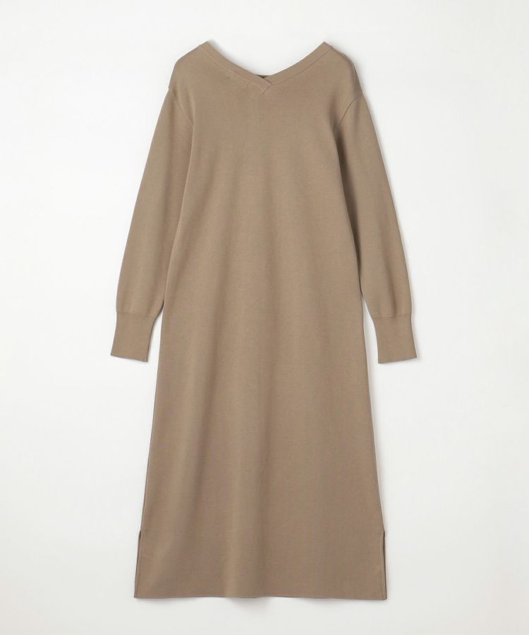 クルーネックとVネックの2パターン楽しめる2way仕様のニットワンピース。